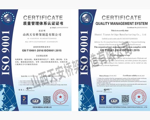 山西天安橋架制造有限公司是一家生產(chǎn)電纜橋架、母線槽的大型廠家,主要生產(chǎn):槽式橋架、托盤式橋架、梯級式橋架、大跨距橋架、母線槽有空氣型、密集型、耐火型、鋁合金等以及通風(fēng)管、可根據(jù)客戶要求定制各種型號各種規(guī)格,表面處理有熱鍍鋅、防火噴塑、防火漆、熱鍍鋅等,產(chǎn)品廣泛應(yīng)用于石油、化工、治金、電力、紡織、通訊、高層建筑等各個領(lǐng)域。產(chǎn)品具有外形美觀,耐腐蝕性強(qiáng),安裝靈活方便,品種齊全等特點(diǎn)。